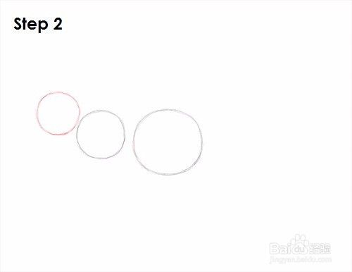 第二步:在左上角再画一个圆圈作为Indominus rex头部的指南。这个圆应该比第一个圆小一点,它们的边应该接触。