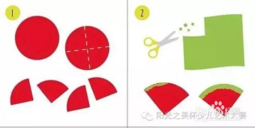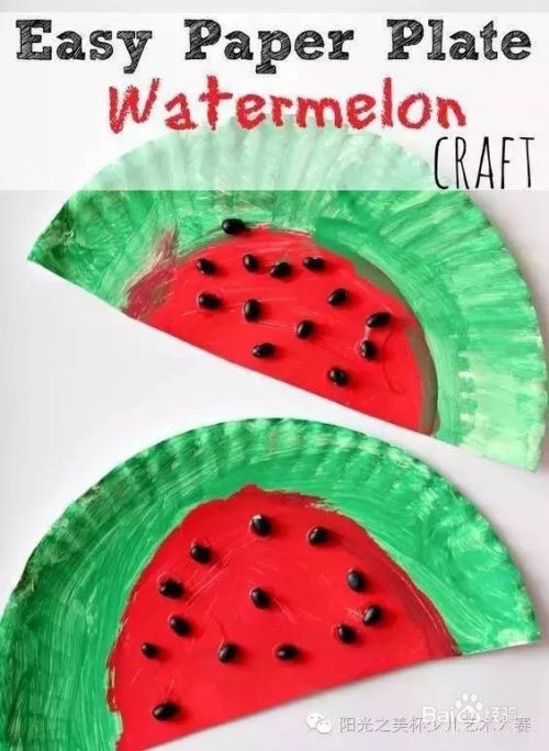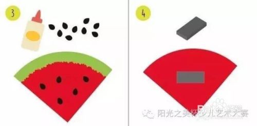 西瓜的籽可以用黑色碎卡纸来做,也可以用黑豆哦~