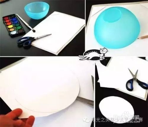 再用碗罩着,在圆形卡纸两侧,画出两个小椭圆形,剪下来做叶子~