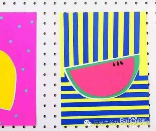黄、蓝搭配特别显眼,再配上红绿卡纸做的西瓜,简直就是太漂亮啦~