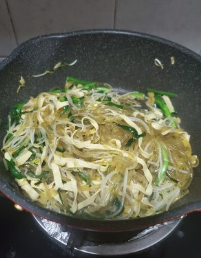 把粉条也放下去,调少许酱油。翻炒一两分钟即可。