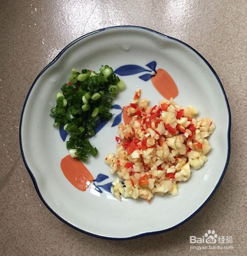 等待期间,把大蒜,小米椒,香葱,全部切成碎末。