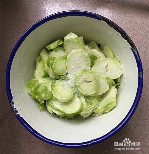 儿菜,洗净后除根部粗老部分后切片,加精盐腌制10分钟。