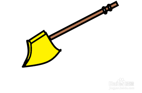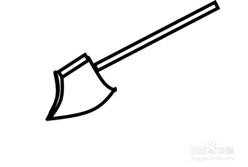 在另外一侧也画上弧线,勾勒出斧头的轮廓;