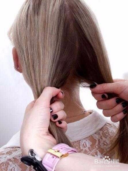 梳理头发,从后面将头发分成两部分(可以借助尖头梳来分);