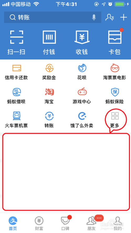 点击手机桌面“支付宝”图标,进入手机“支付宝”。