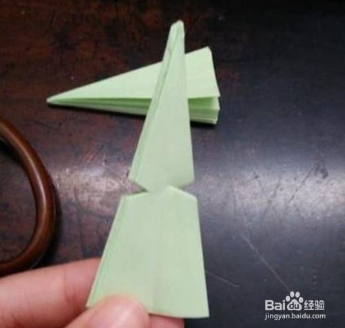 把中间的尖向下按,把折痕都在捏一遍,把另一个折纸打开如图。