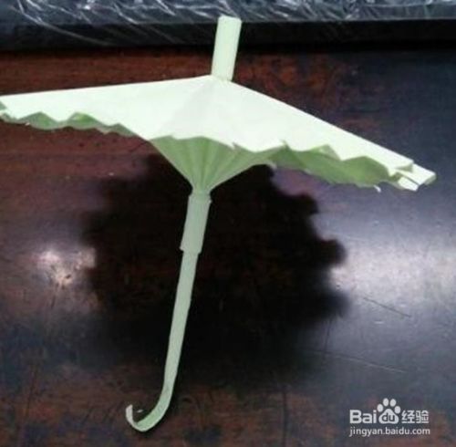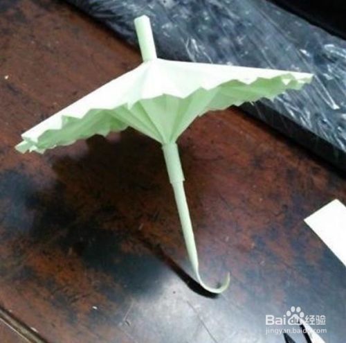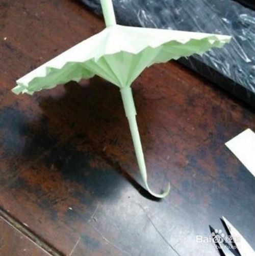 把伞的顶端也剪个小口,把做好的纸棍插入伞内。