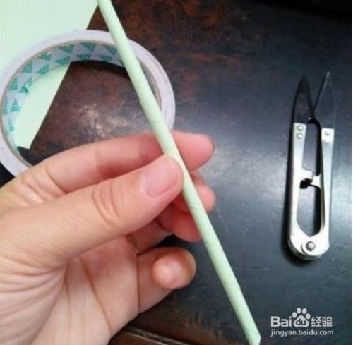 再用个窄的纸缠在纸棍的头上,做好后,把伞的中间剪个小口。