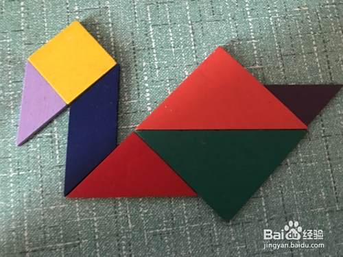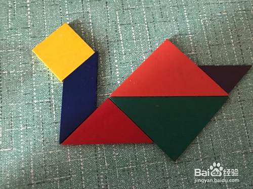 再放入一个大三角形,正好和另一个大三角形组成了鹅的身体。
