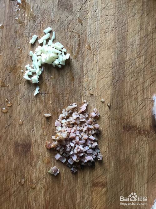 第7步,做酱,切点蒜沫,腊肉沫,我调了一个芝麻酱和豆瓣酱加生抽的酱汁,把蒜沫和肉沫放锅里,加点油,稍微炒香一点,然后加入酱汁,收汁出锅。