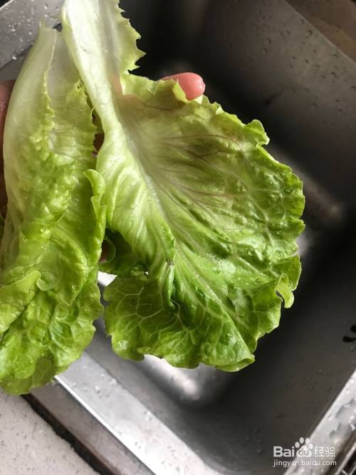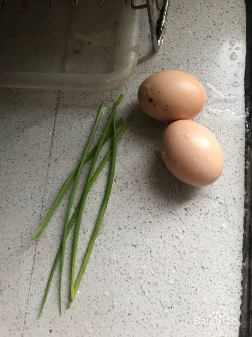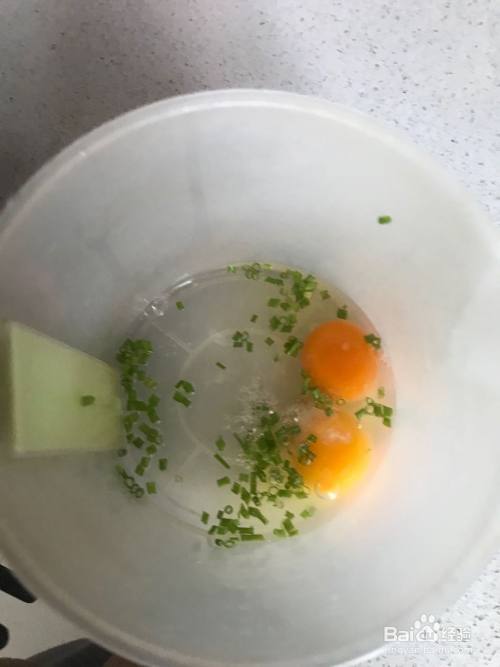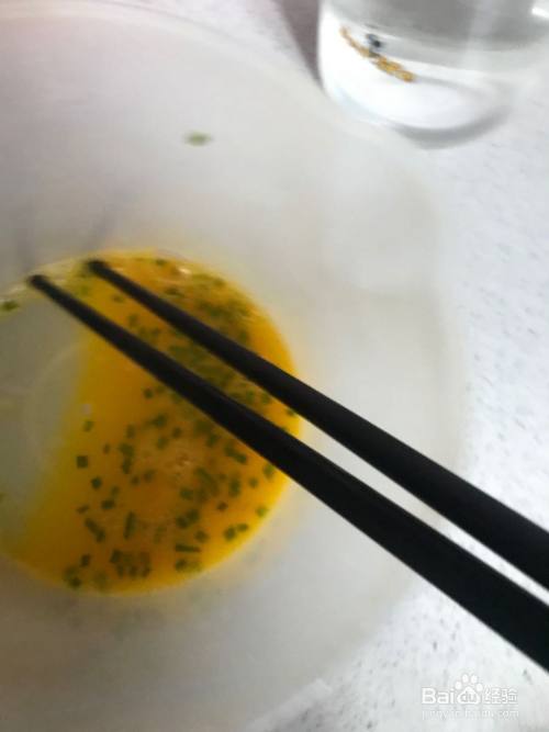 第8步,把生菜洗干净待用,准备好的鸡蛋,葱切段,鸡蛋敲碎放入杯中,加入葱段,盐,搅拌均匀。