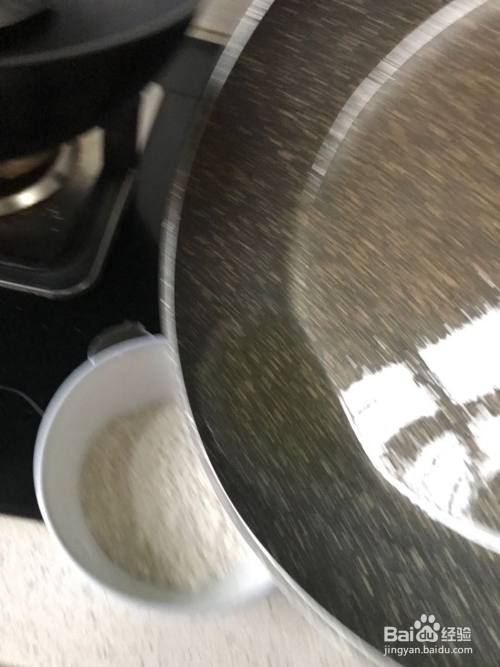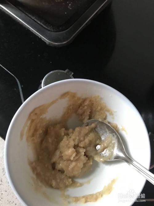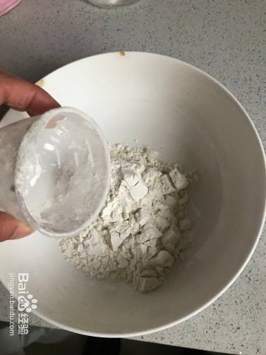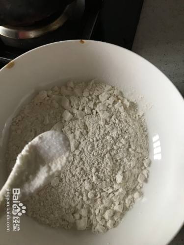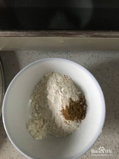 第4步,这会可以准备油酥了。取一个干净无水无油的小碗,取三勺左右的面粉放小碗里,加一点五香粉,然后开火把油加热,大约10毫升油就好了。油热后倒入小碗,搅拌均匀,油酥要做的稍微粘稠一点。