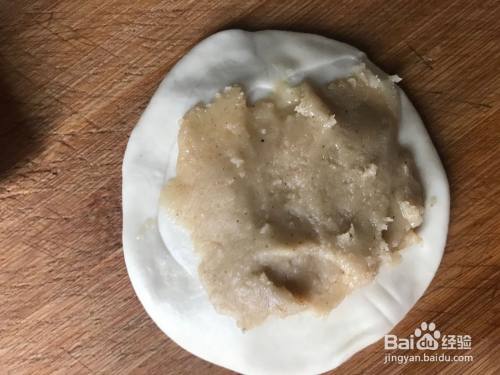 第6步就是包油酥,把分好的小面团稍微压一下,压扁一点,然后把油酥包进去,像包包子似的,收好口,不要让油酥流出来了。然后用保鲜膜包好,如果是为了第二天早上吃的,那么可以放冰箱里面去了。如果是现做现吃的,那么静置一会,去准备其它食材吧。