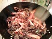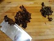 3木耳去蒂,切丝,我切得比较宽,也可以切细一点,不过不要太细就好,8mm 左右就行