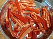 4红椒洗净,切小片,葱切葱花,蒜拍成 蒜蓉