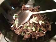 5锅中热油,放一点蒜蓉爆香,倒入木耳翻炒2-3分钟,加锅盖焖3分钟。