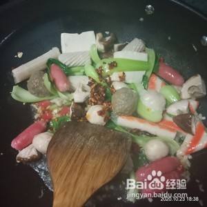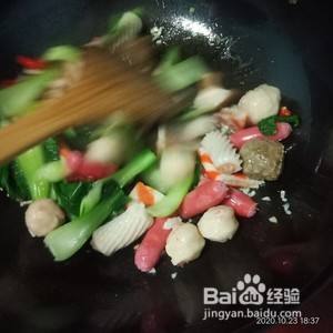 刚刚焯蔬菜的水别倒,继续拿来煮火锅丸子,煮熟都捞到碗里,也是先把容易熟的捞出来,不容易熟的多煮会(我这里简单准备了青菜香菇和火锅丸子)。 注意,如果食材里有木耳,还是请放到丸子后边,理由不再赘述。