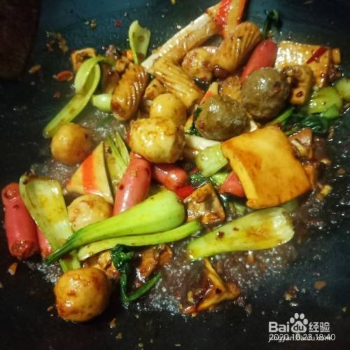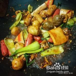 关小火或者熄火,来调味。 一勺鸡精,一勺盐,两勺辣子油,一勺生抽,一勺老抽(调色),一勺蚝油,基本就是,厨房有啥就加啥。