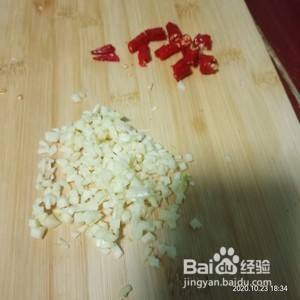 煮一锅开水(开水煮更快)。没有放图是因为,我用的是煮水饺剩的汤水,比较混浊 ;煮开水的空当,切蒜切小米椒(根据个人口味自己加减)。