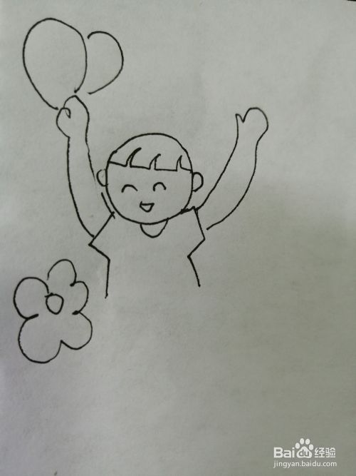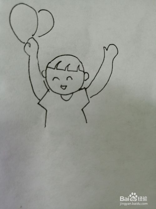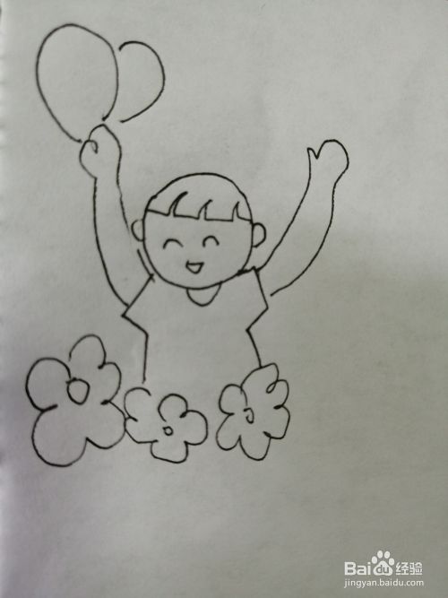 第六步,然后在小孩的手上画出一个漂亮的小气球。