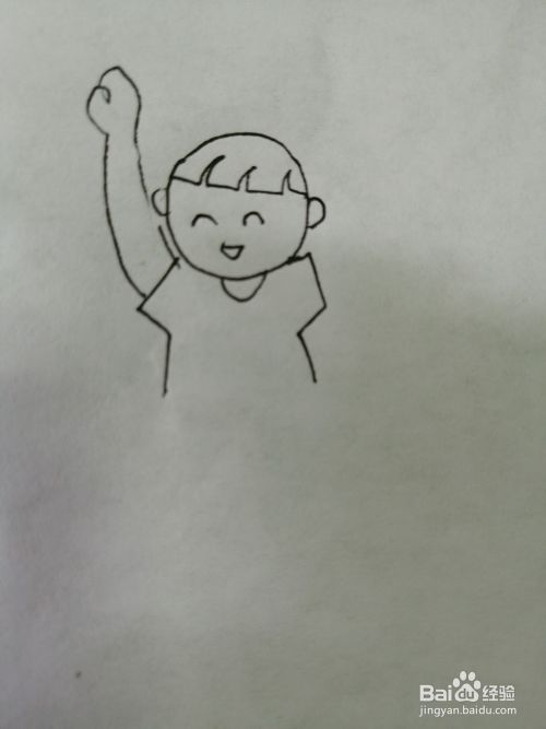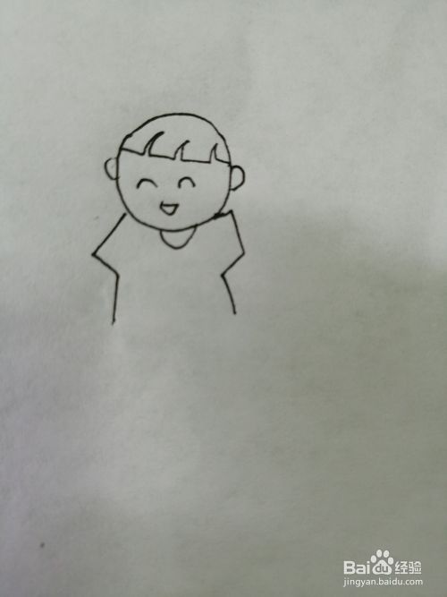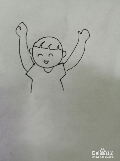 第五步,接着在小孩的袖口的两边画出两个长长的手臂。