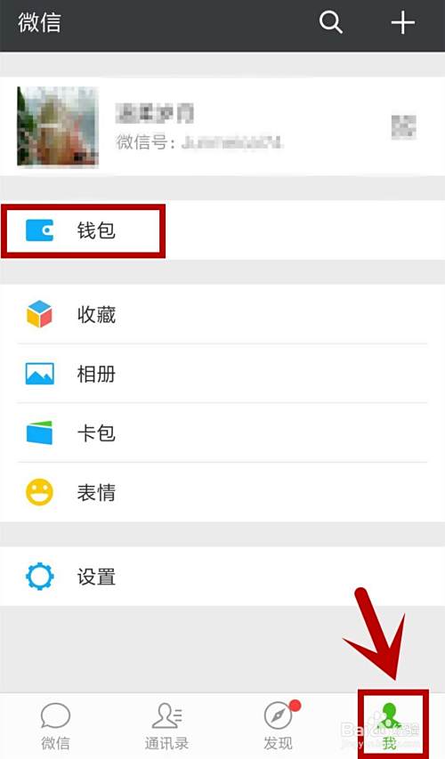 打开手机微信,选择屏幕右下角的“我”,然后选择”钱包“。