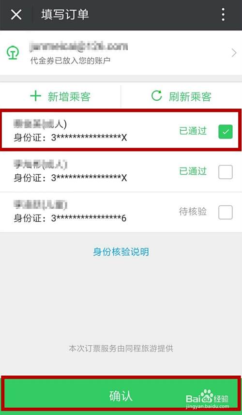 选择或添加乘客,说明:乘客可为1人,也可为多人。