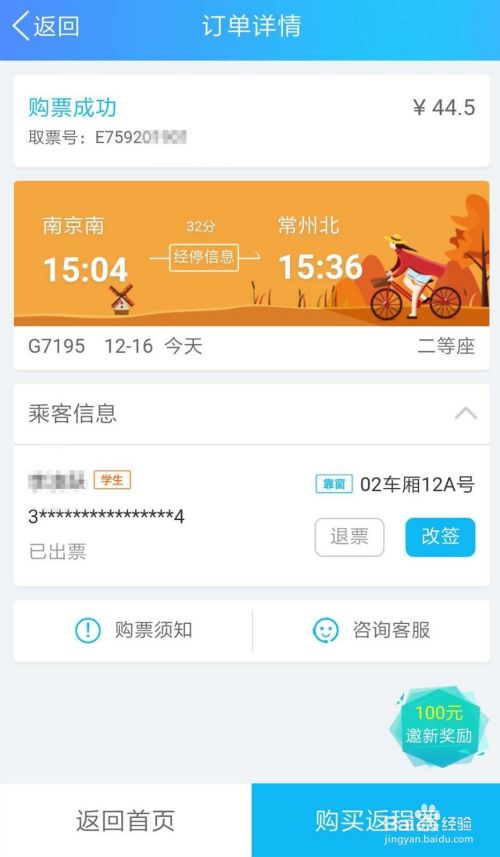 注意:火车票购买后可“改签”、“也有退票”,还可购买返程票,改签和退票规则见铁路中心的规定,一般提前2个小时。