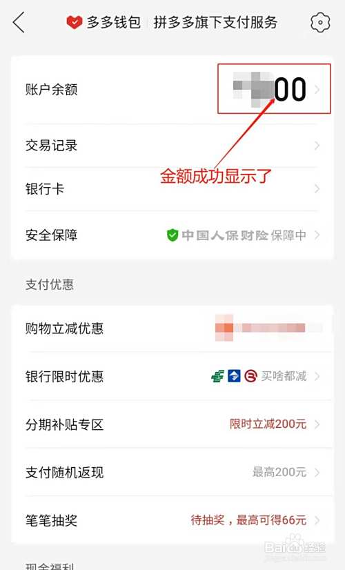 返回多多钱包首页,账户余额处成功显示余额了。
