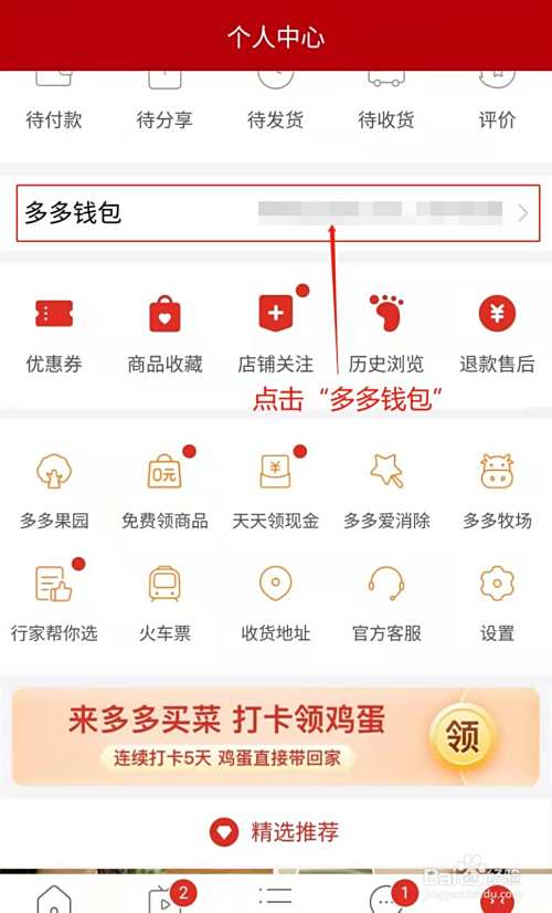 进入我的个人中心,点击“多多钱包”;