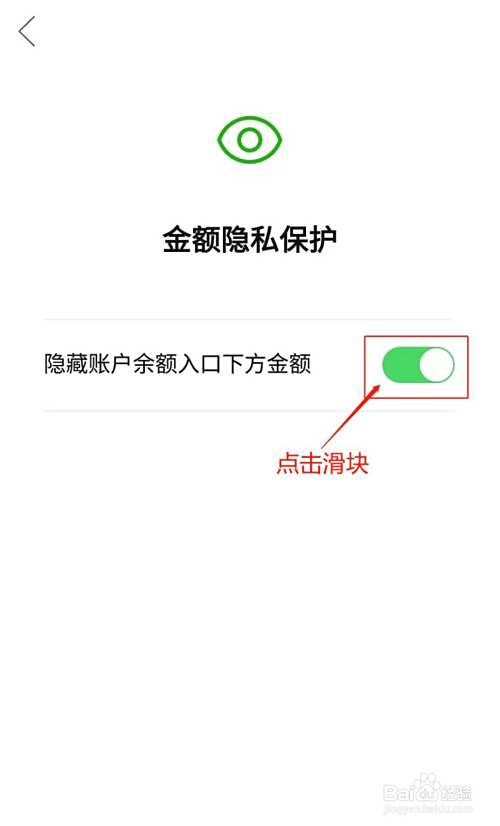 调整至“金额隐私保护”设置界面,点击“隐藏账户余额入口下方金额”选项后方滑块;