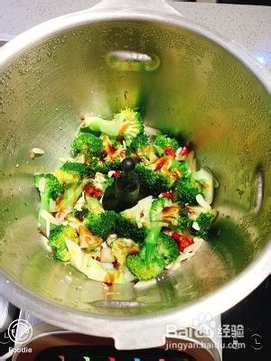 还剩1分钟时开盖放入蚝油、小米椒再继续翻出。
