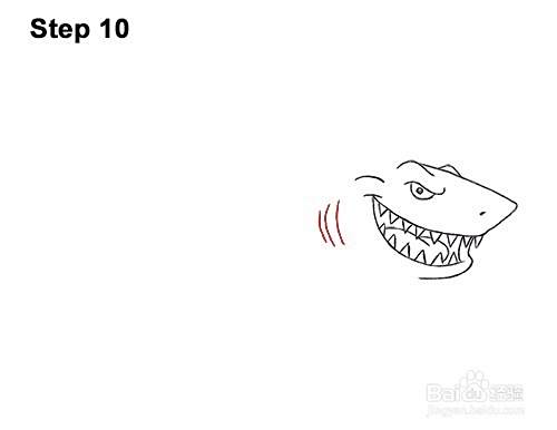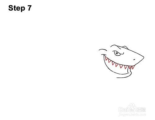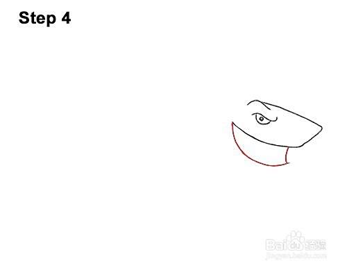 第5步:在右侧平行于鲨鱼嘴唇的嘴巴画一条线。