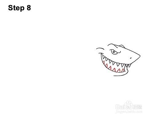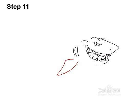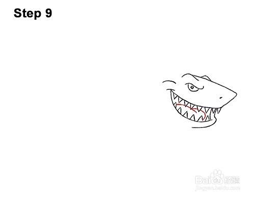 第9步:将鲨鱼的舌头画成两条牙齿之间的曲线。不要重叠牙齿的线条。如果牙齿之间没有足够的空间,也可以跳过这一步。