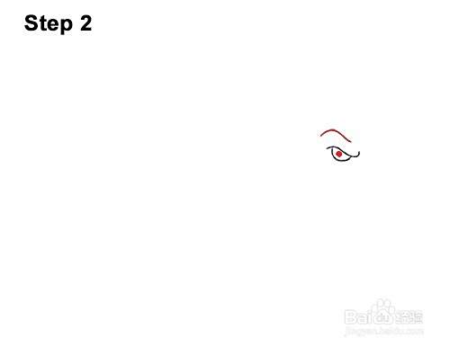 步骤1:为卡通鲨鱼眼的顶部绘制一条短对角线。弯曲线条的尖端,使其看起来更像一条皱纹的眉毛。在眼睛底部画一条曲线。