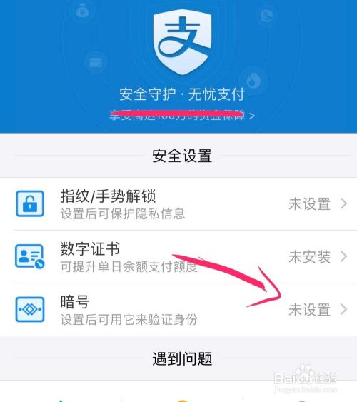 安全中心也就是安全设置了、现在我们就可以看到“暗号”这两个字了、我们只要点击它进来就能设置暗号。