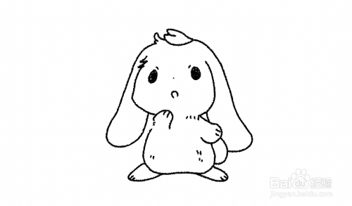 然后就画上小兔子的身体和脚,旁边画上小尾巴。