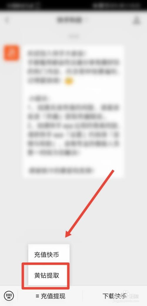 进入公众号聊天页面后,点击进入充值提现、黄钻提取功能;
