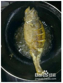 锅内放适量的油,放入葱姜炸香,然后把黄鱼放入煎制两面金黄。