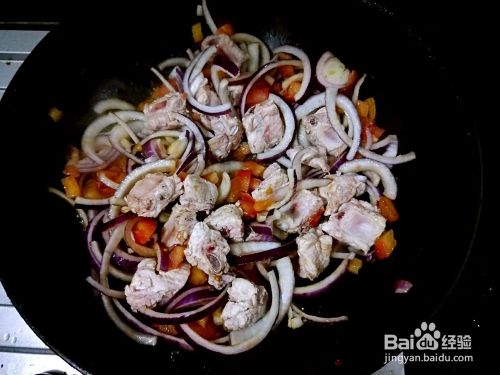 热锅起油,放入番茄翻炒,把番茄煮软,煮出汁后倒入排骨,洋葱,蒜米翻炒。翻炒过程中加入一勺生抽,一勺料酒,几块冰糖,一勺盐,一起翻炒均匀。