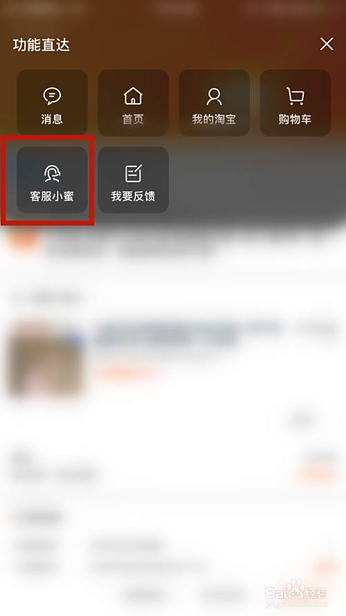 然后点击右上角的功能符号,点击调出【功能直达】,选择【客服小蜜】