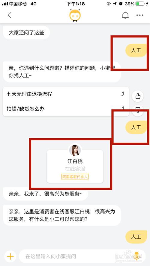 最后重复输入人工,知道跳出真人客服小二为止,通常发送两次即可完成