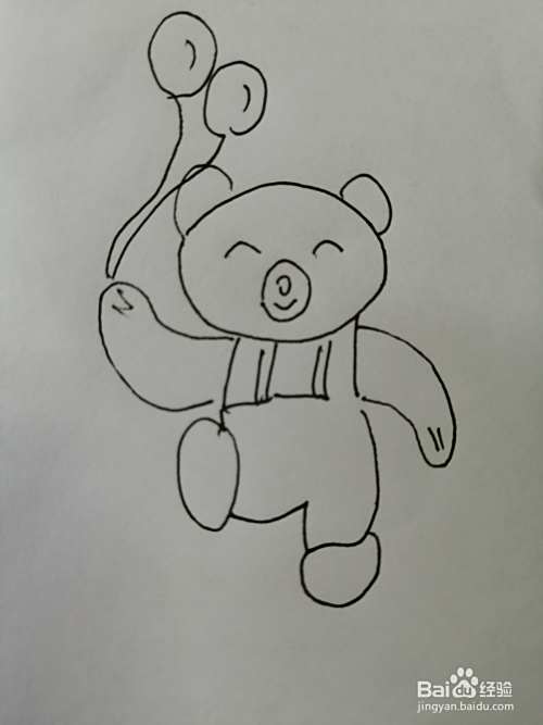 第七步,最后把可爱的小熊的手上的气球画出来。可爱的小熊就画好了。