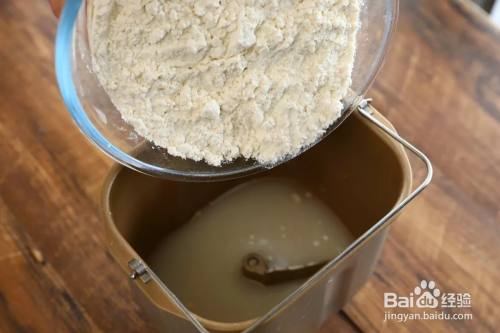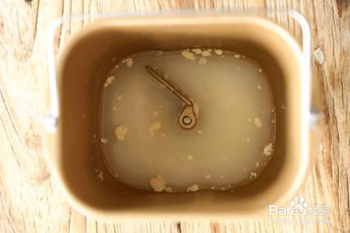 面包机桶内倒入230g清水,加入4g干酵母,静置2分钟左右,等酵母化开。