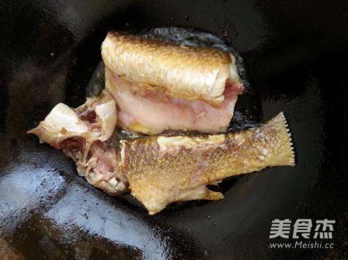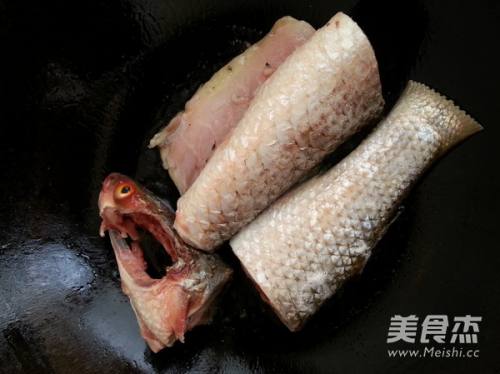3锅烧热后,加入油,关小火,将鱼块下锅中,慢煎