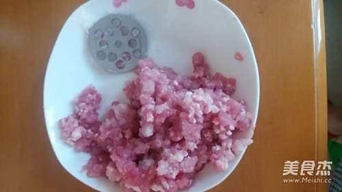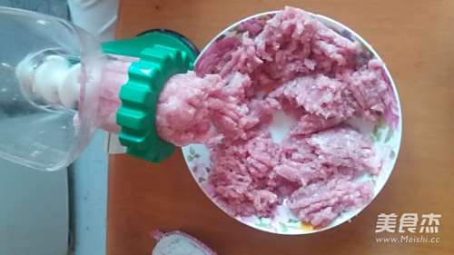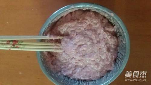 6放好调料的淀粉水用力,如果干了再添加一点水,直至把肉糜调松软