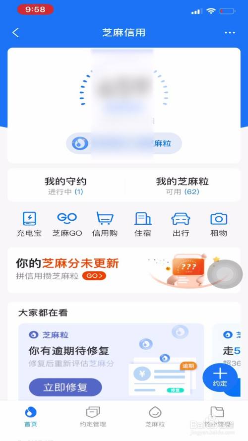 随后点击我的页面里的芝麻信用。