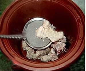 将脊骨捞起放入紫沙锅,加入足够的清水;