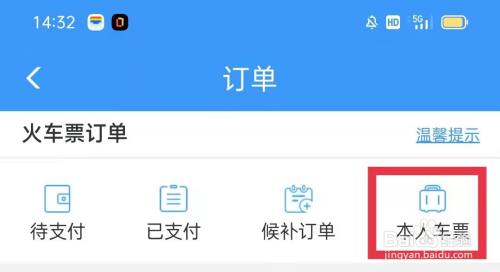 在手机铁路12306APP的右下角单击我的,单击我的订单,单击本人车票进行查看即可。
